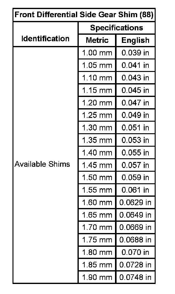 Shim Size Specifications: