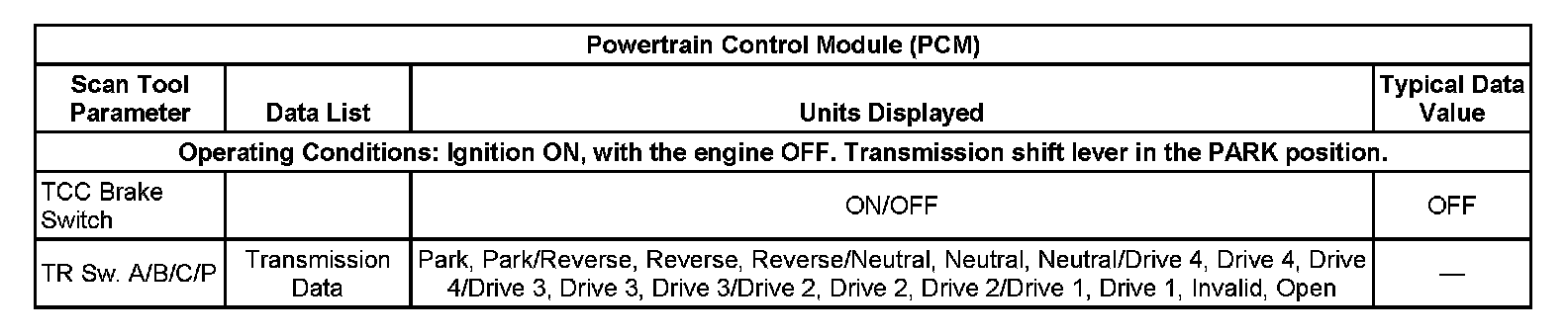 Scan Tool Data List