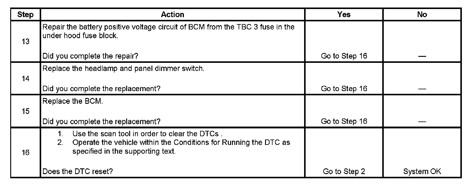 - An open in the TBC 3 fuse will cause the BCM to set the following DTC: