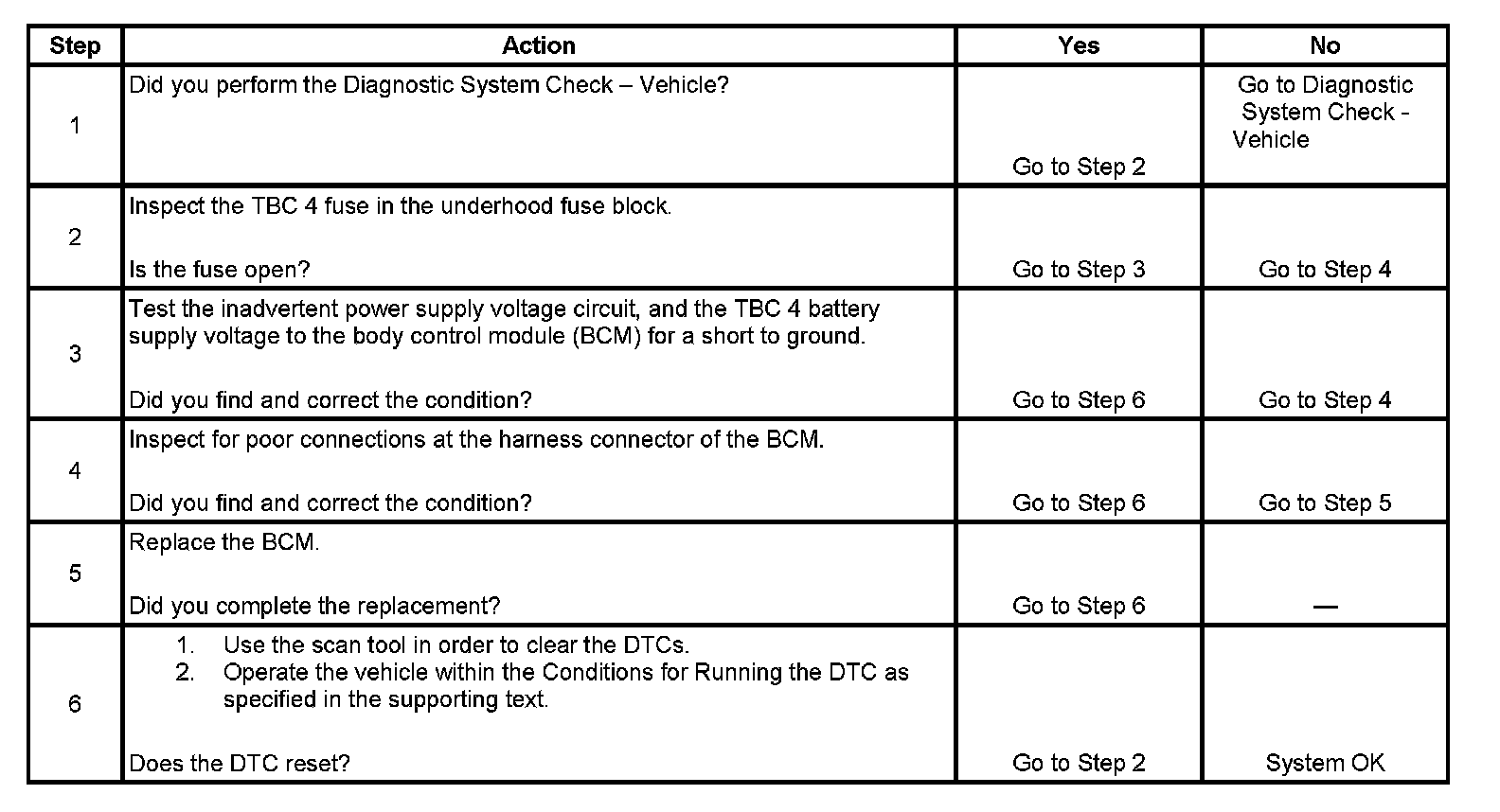 - A short to ground in the inadvertent power supply voltage circuit or the battery positive voltage circuit will cause the TBC 4 fuse to open.