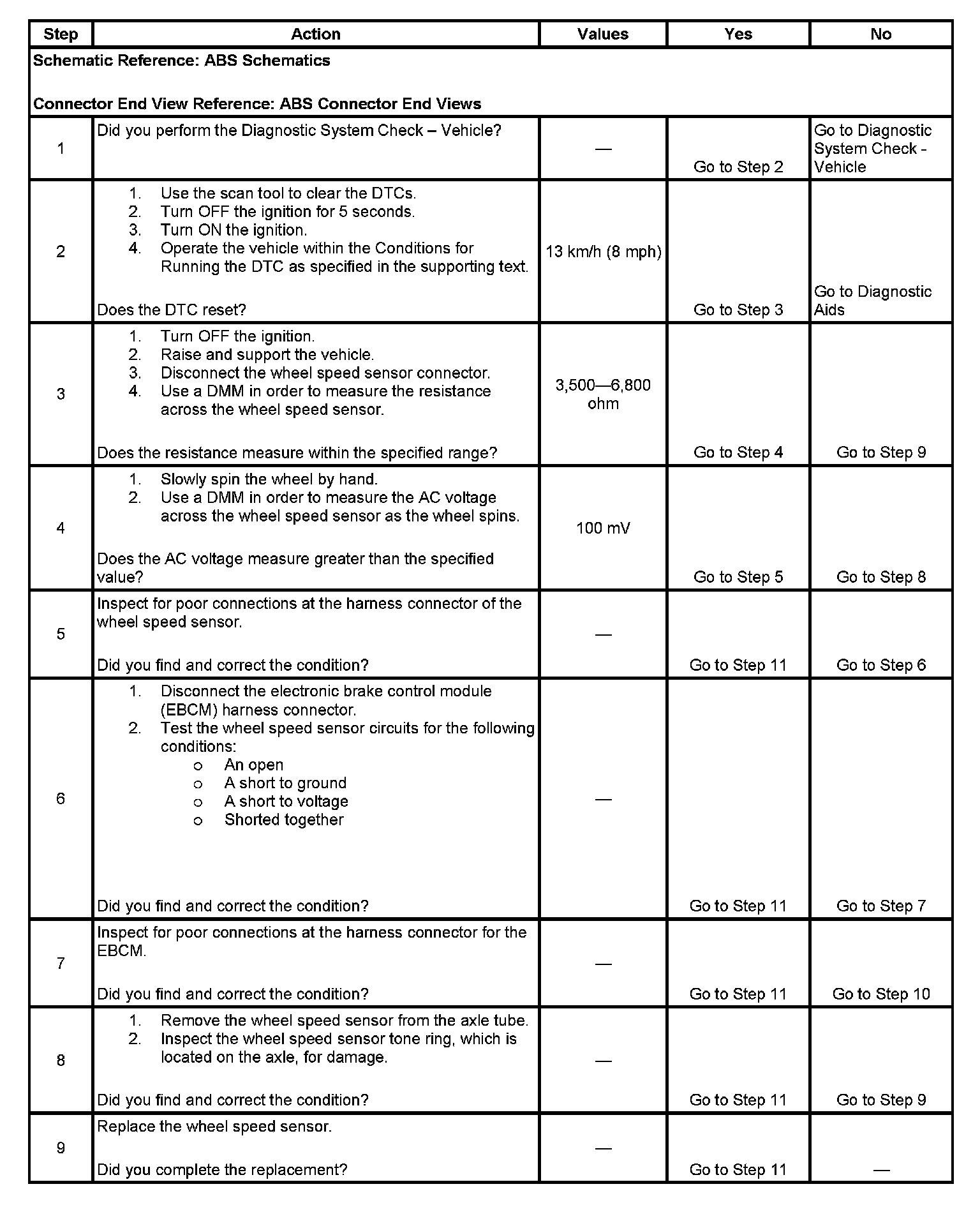 ^ The EBCM detects a shorted wheel speed sensor circuit for 500 milliseconds.
