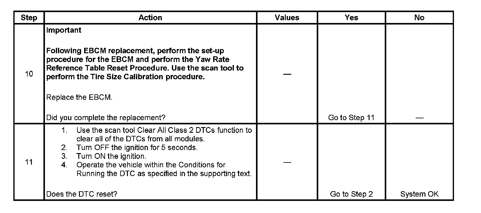 ^ The EBCM disables the ABS/traction control system (TCS)/vehicle stability enhancement system (VSES) and may disable the dynamic rear proportion (DRP) if more than one wheel speed sensor DTC is set.