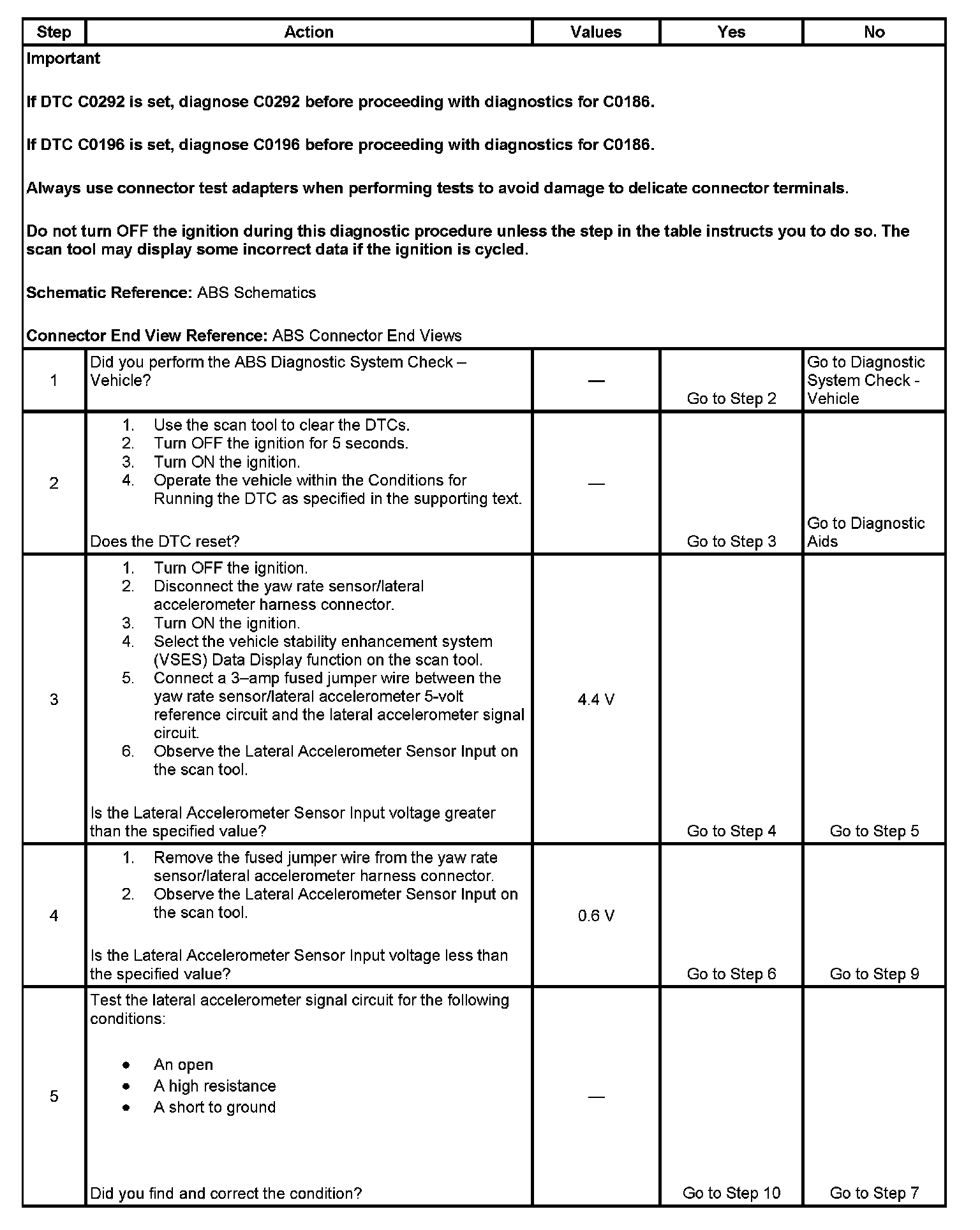 DTC C0186 Lateral Accelerometer Circuit