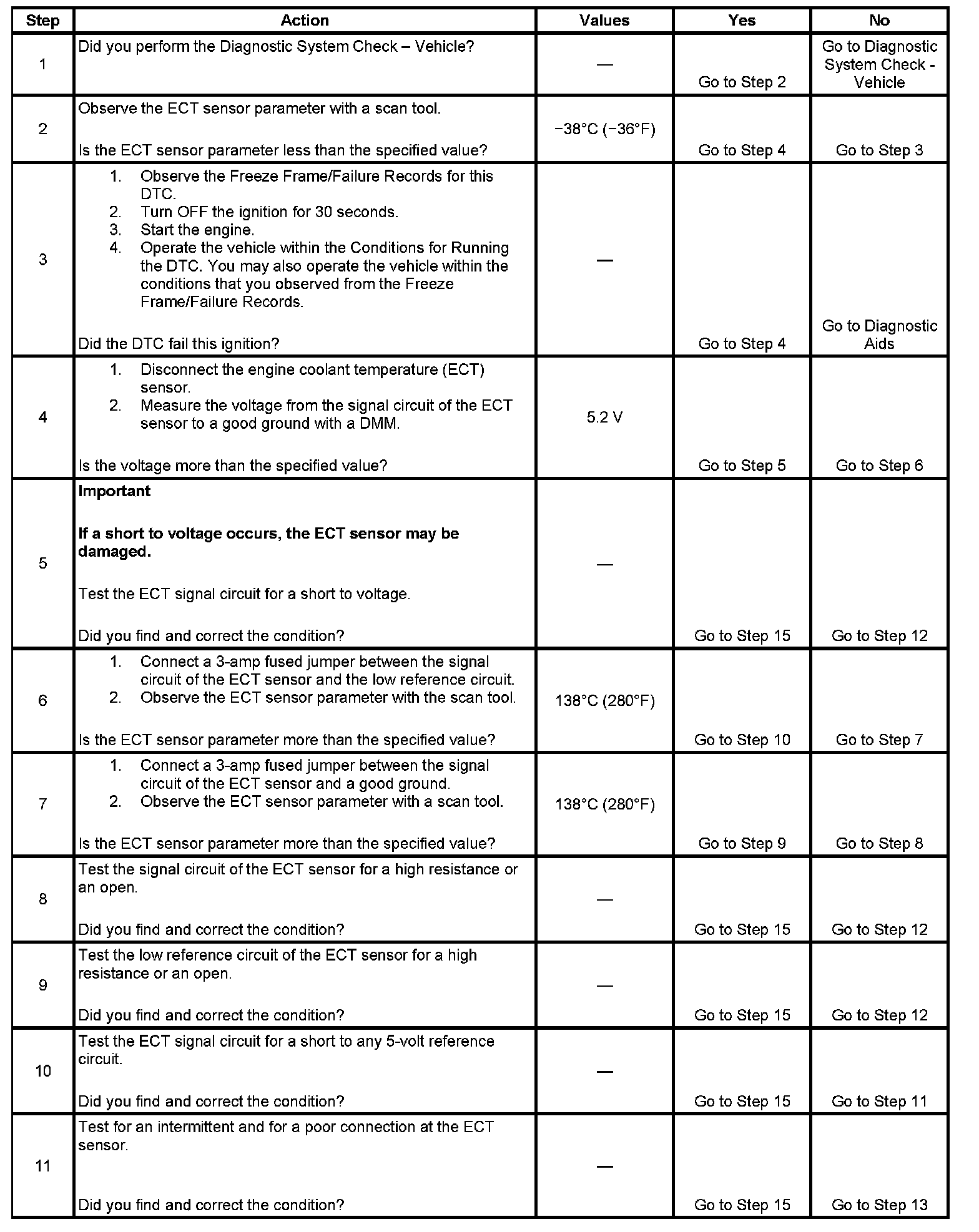 - Use the Temperature vs. Resistance table in order to test the ECT sensor. A skewed sensor could result in poor driveability conditions. Refer to Temperature vs Resistance.
