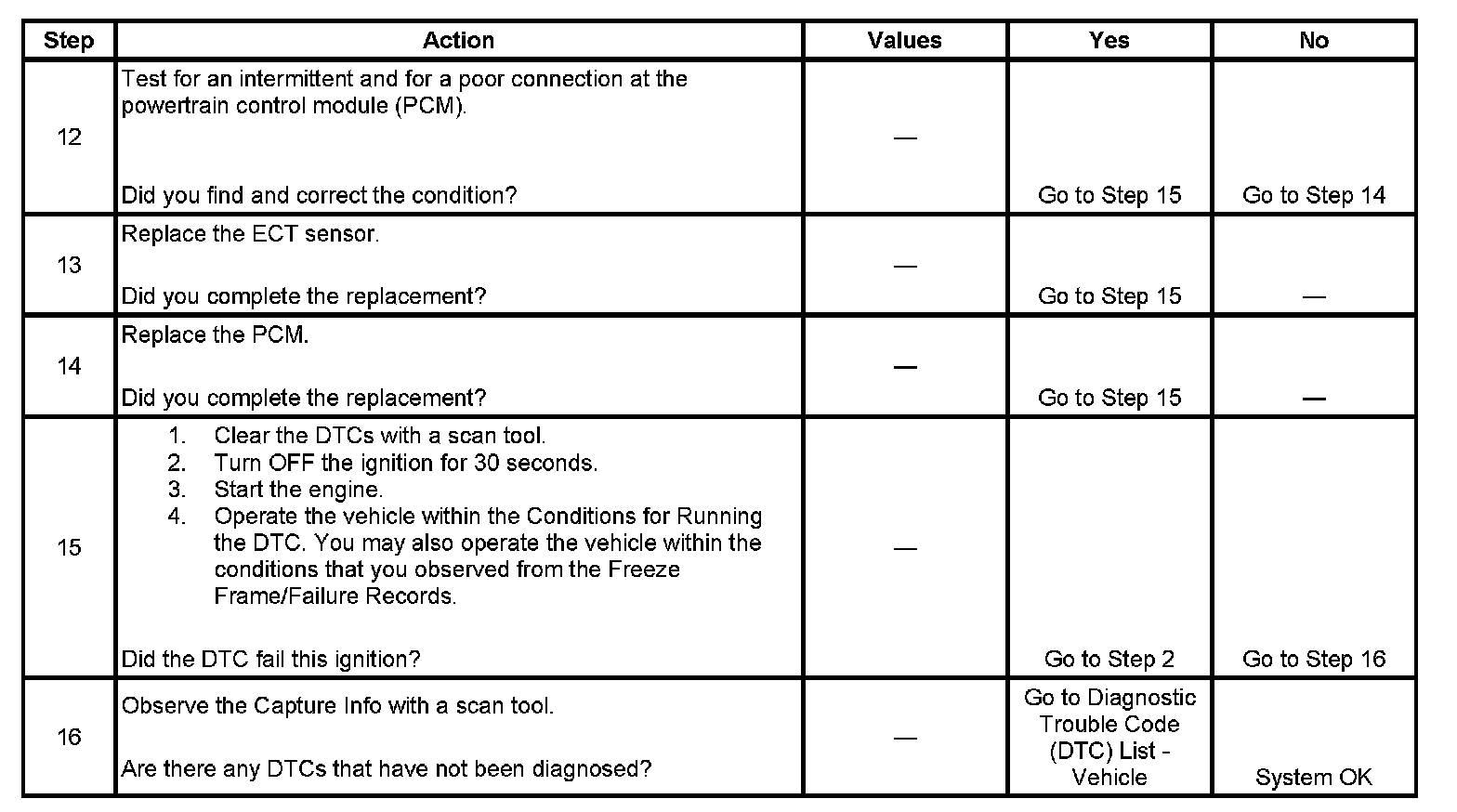 - A current DTC, Last Test Failed, clears when the diagnostic runs and passes.