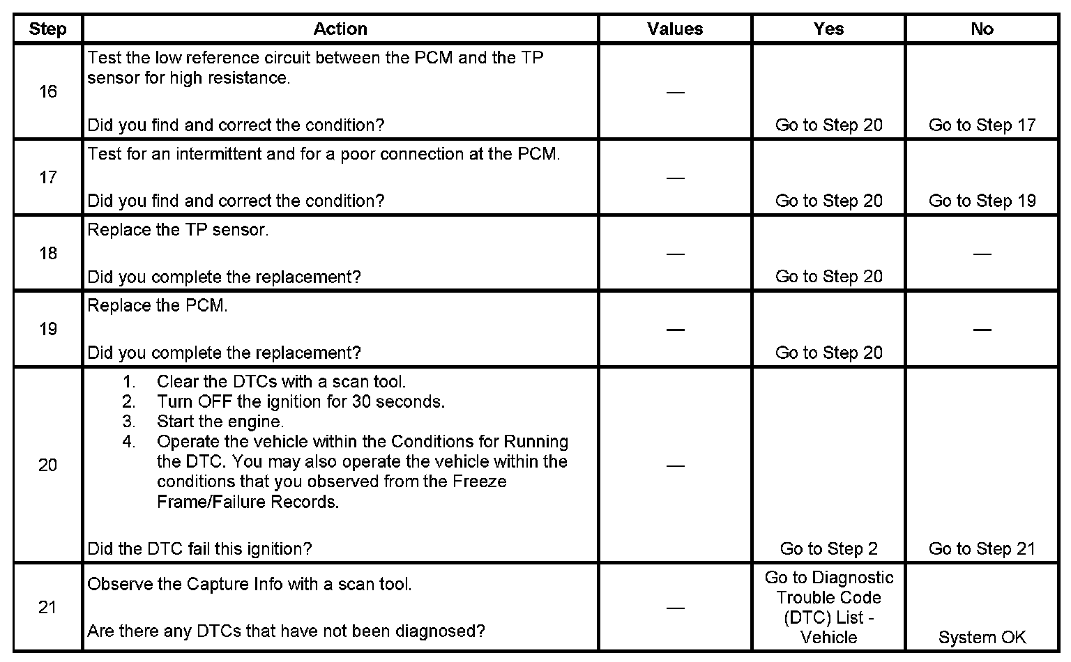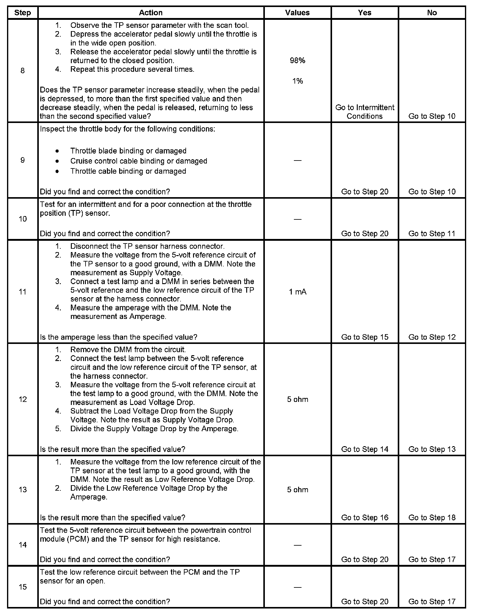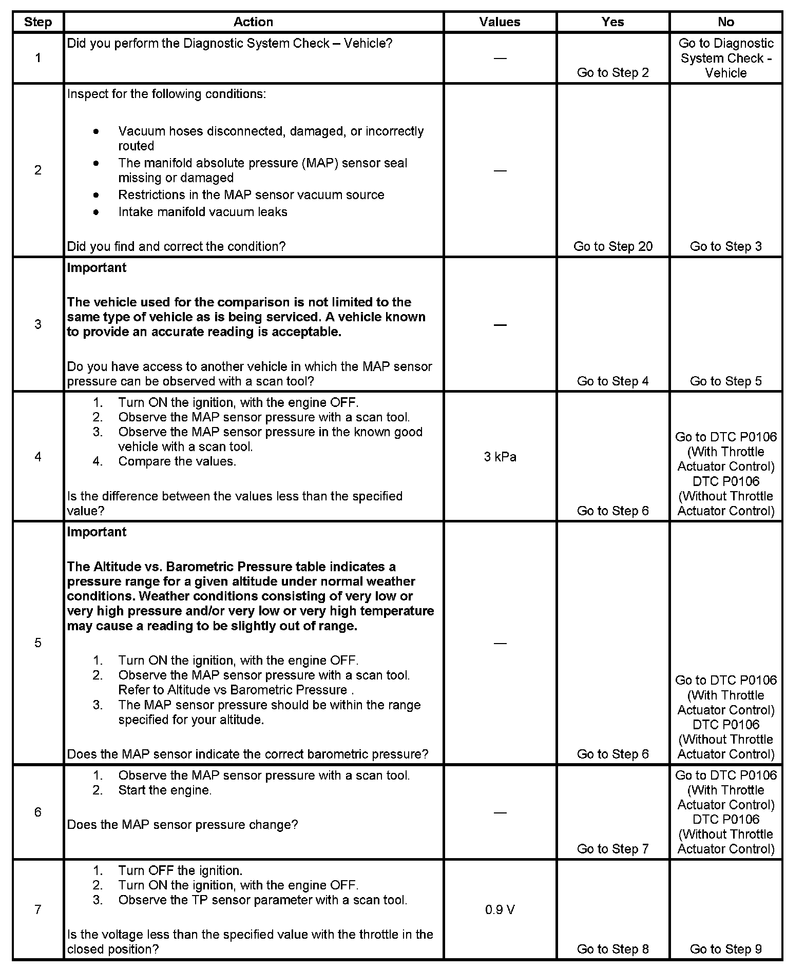 - The PCM detects that the TP sensor voltage is more than a predicted value when the MAP is less than 55 kPa. OR The PCM detects that the TP sensor voltage is less than a predicted value when the MAP is more than 65 kPa.