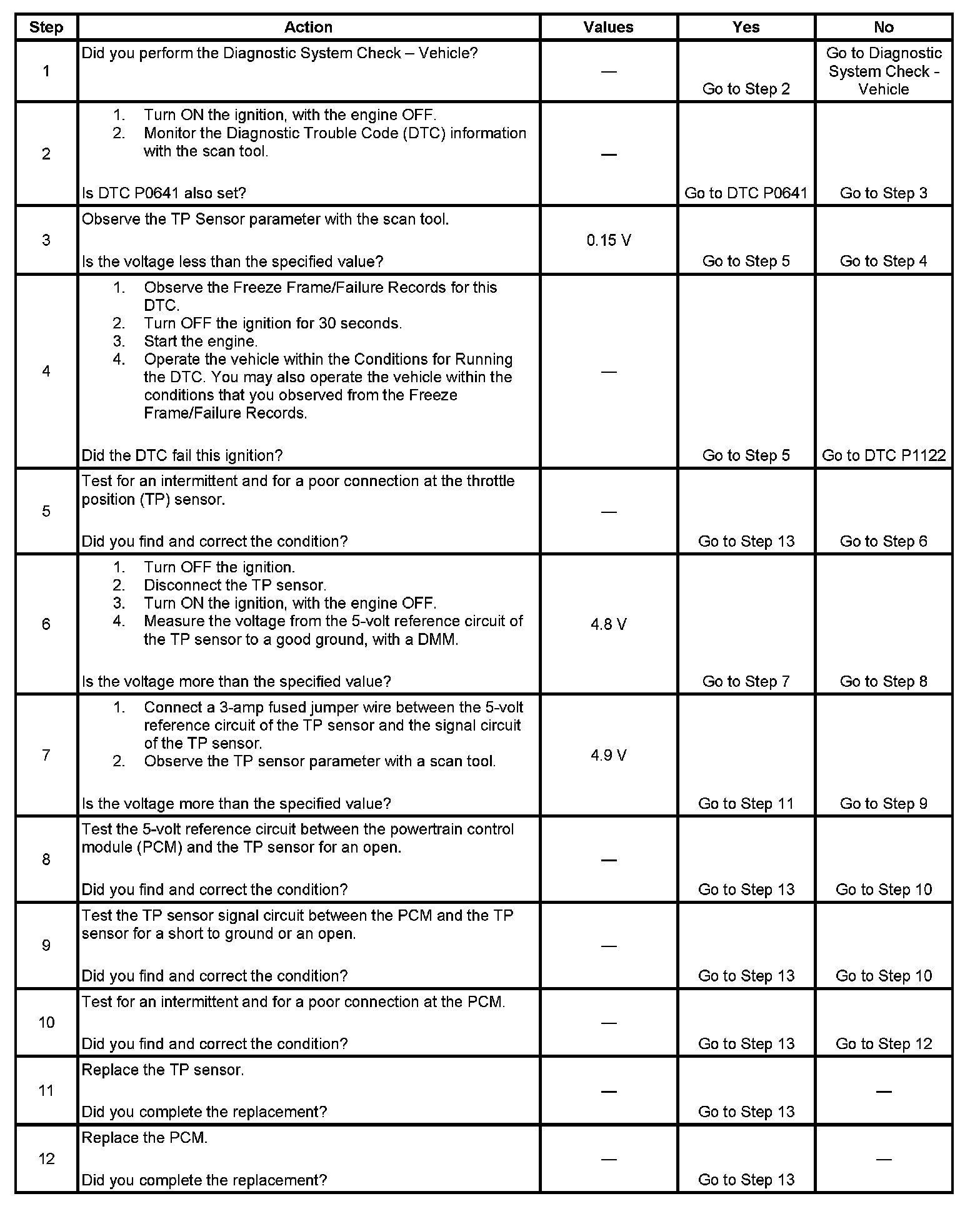 DTC P0122 Throttle Position (TP) Sensor Circuit Low Voltage