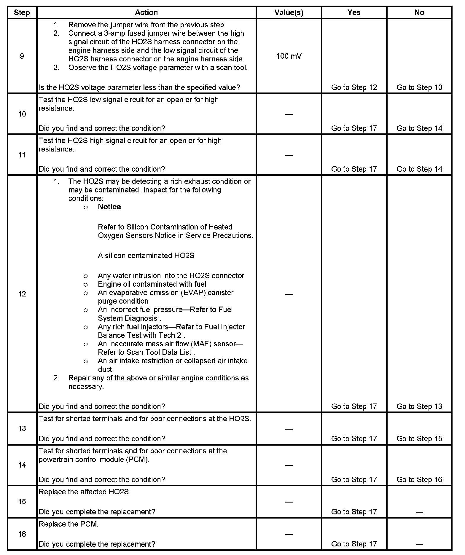 The PCM detects that the affected HO2S voltage parameter is greater than 480 mV for 5 seconds.