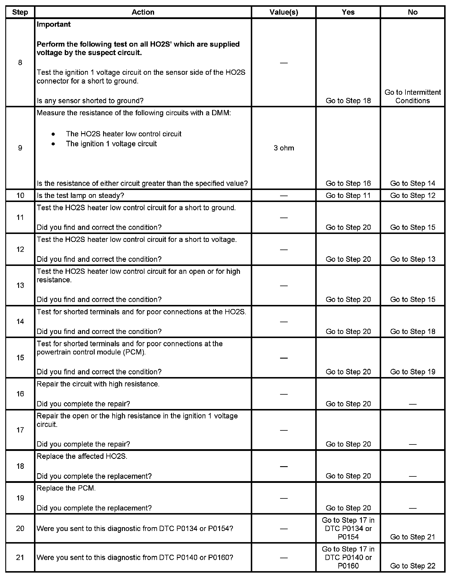 - The PCM detects that the affected HO2S Heater current parameter is greater than 1.375 amps or less than 0.25 amps.