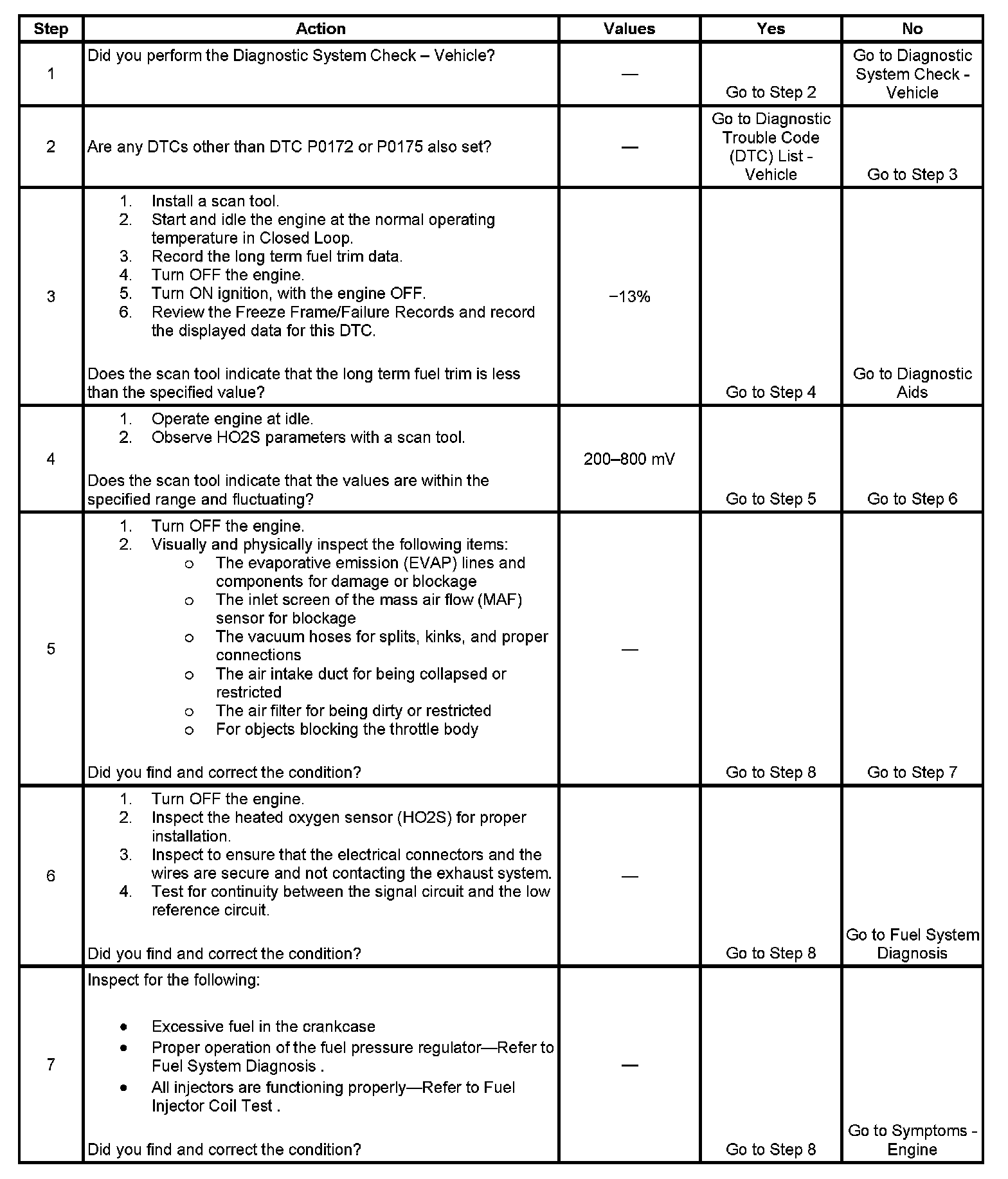 - DTC P0172 Fuel Trim System Rich Bank 1