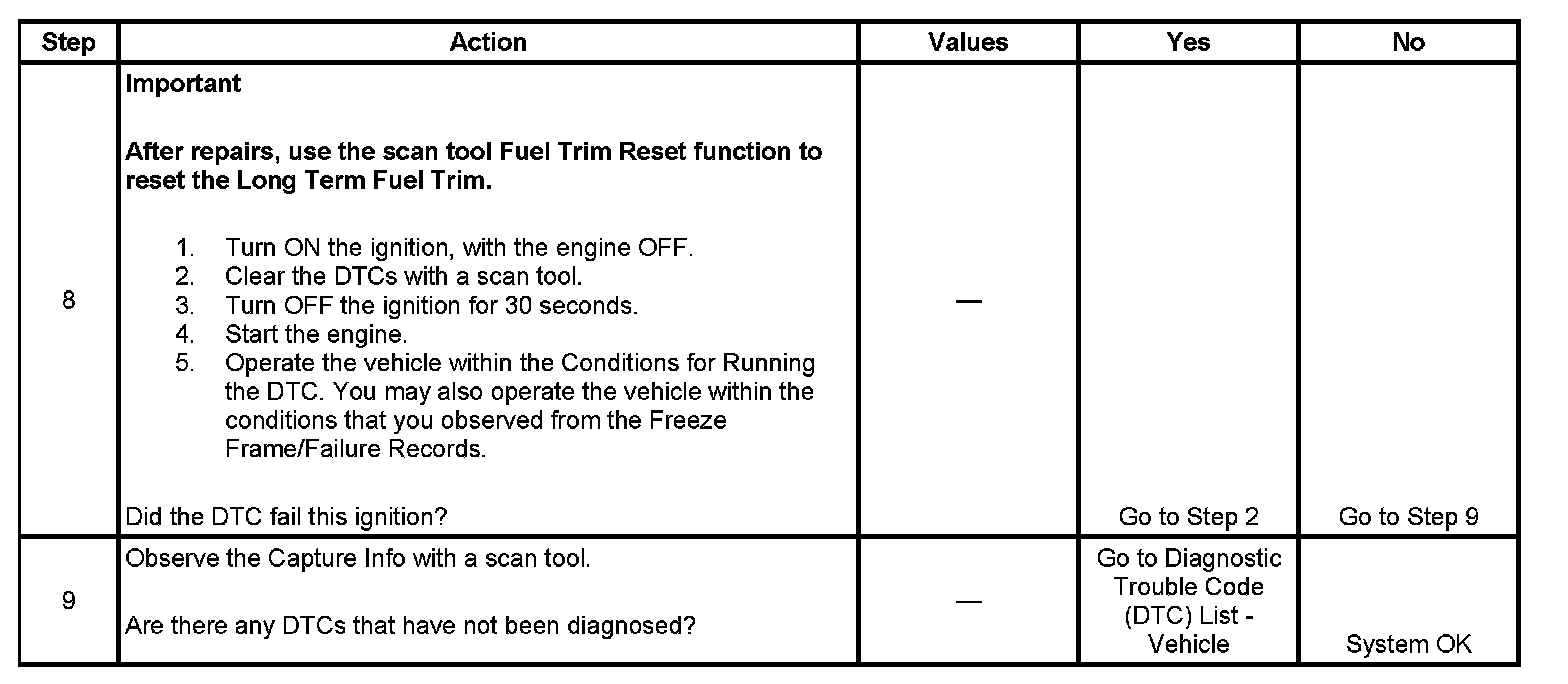- DTCs P0053, P0054, P0059, P0060, P0101, P0102, P0103, P0106, P0107, P0108, P0131, P0132, P0133, P0134, P0135, P0136, P0137, P0138, P0140, P0141, P0151, P0152, P0153, P0154, P0155, P0156, P0157, P0158, P0160, P0161, P0200, P0300, P0442, P0443, P0446, P0449, P0452, P0453, P0455, P0496, P0506, P0507, P1133, P1134, P1153, P1154, P2A01, or P2A04 are not set.