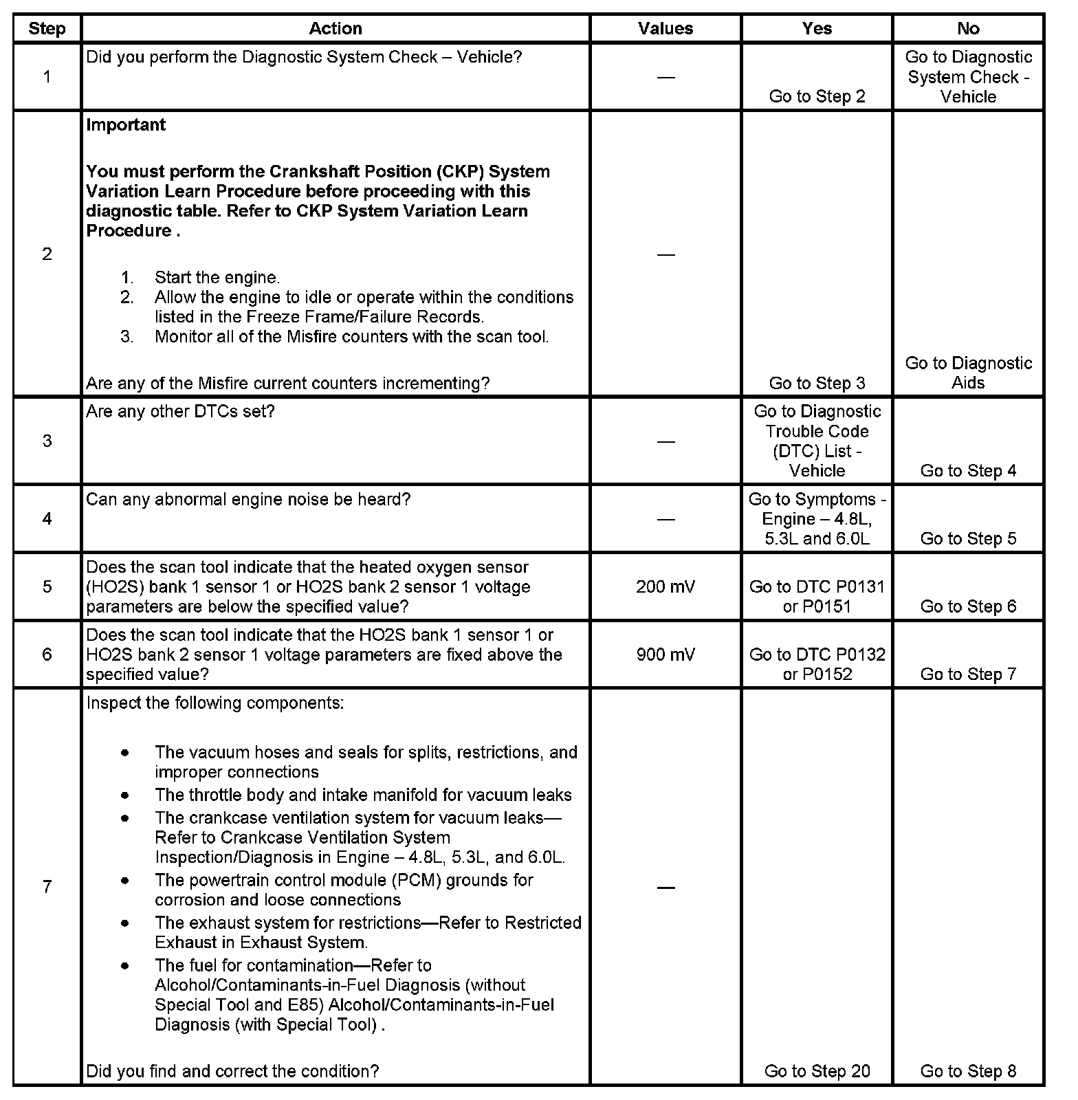 2. If the actual CKP variation values are not within the learned values, the misfire counters may increment.