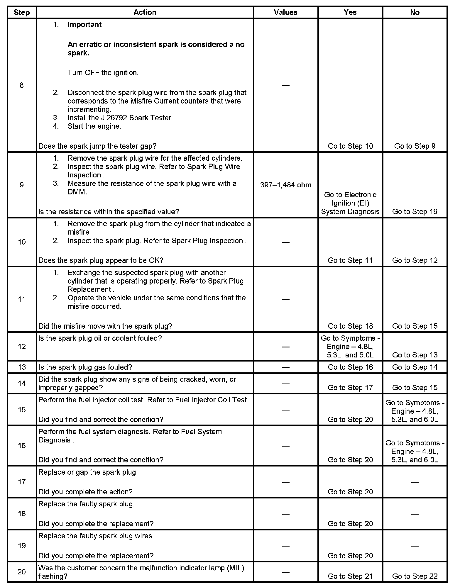- If there are multiple misfires on only one bank, inspect the fuel injector and ignition coil, power and ground circuits for that bank.