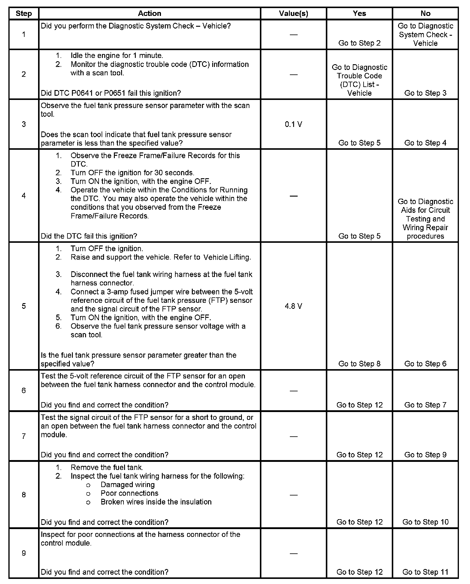 - The FTP sensor voltage is less than 0.1 volts.