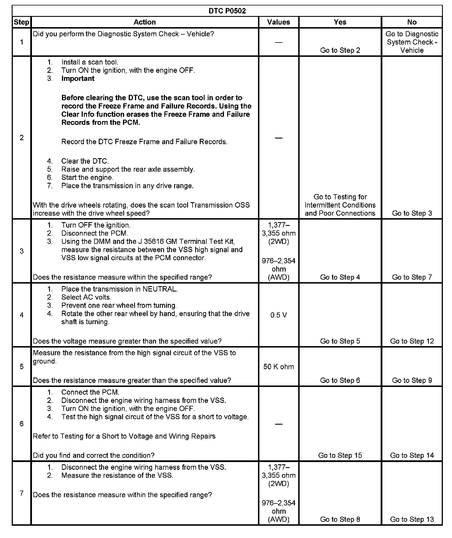 DTC P0502 Vehicle Speed Sensor (VSS) Circuit Low Voltage