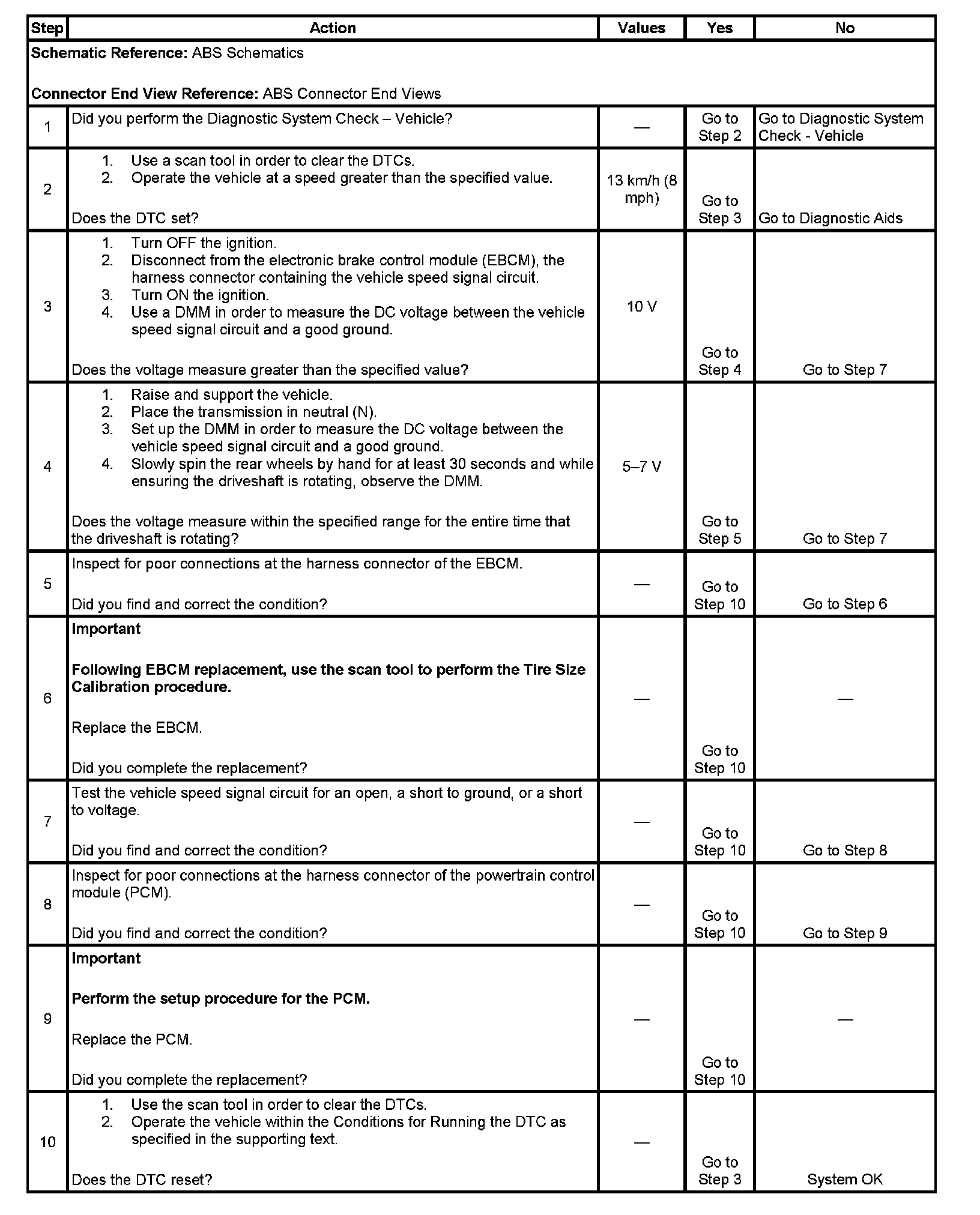 ^ The EBCM detects an open or shorted vehicle speed signal circuit for 500 milliseconds.