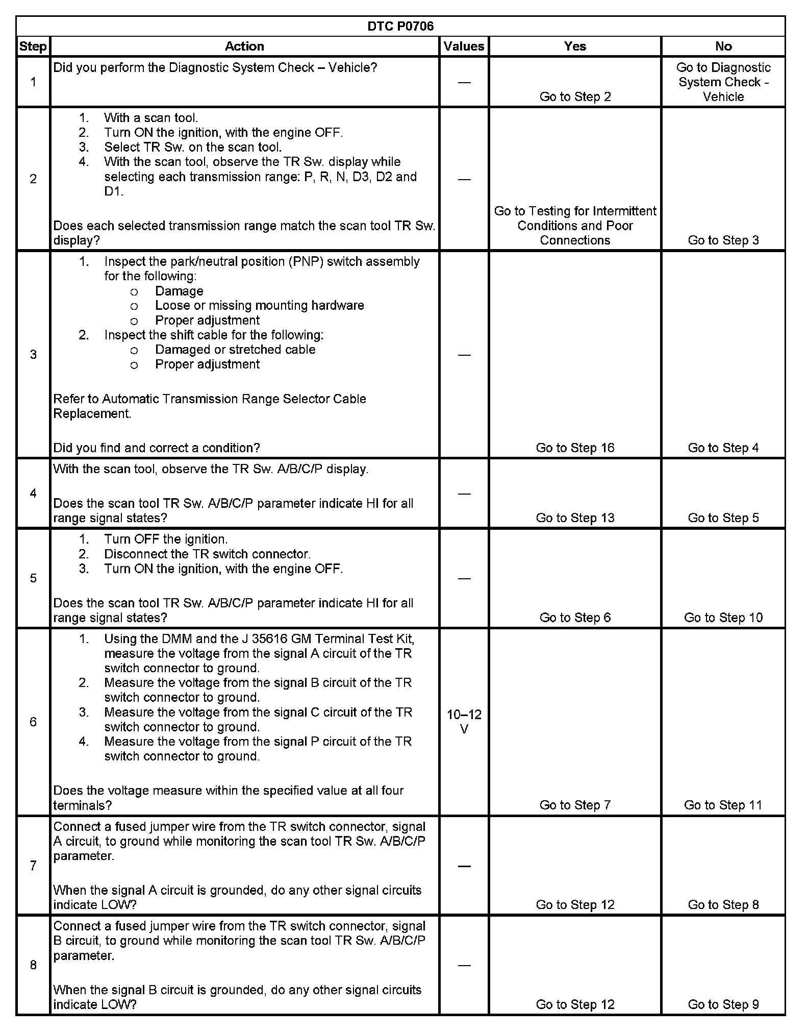 DTC P0706 Transmission Range (TR) Switch Performance