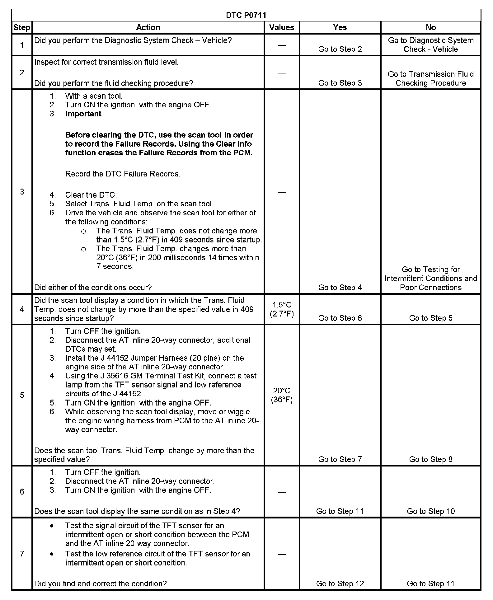 When the PCM detects one of the following unusual conditions, then DTC P0711 sets.