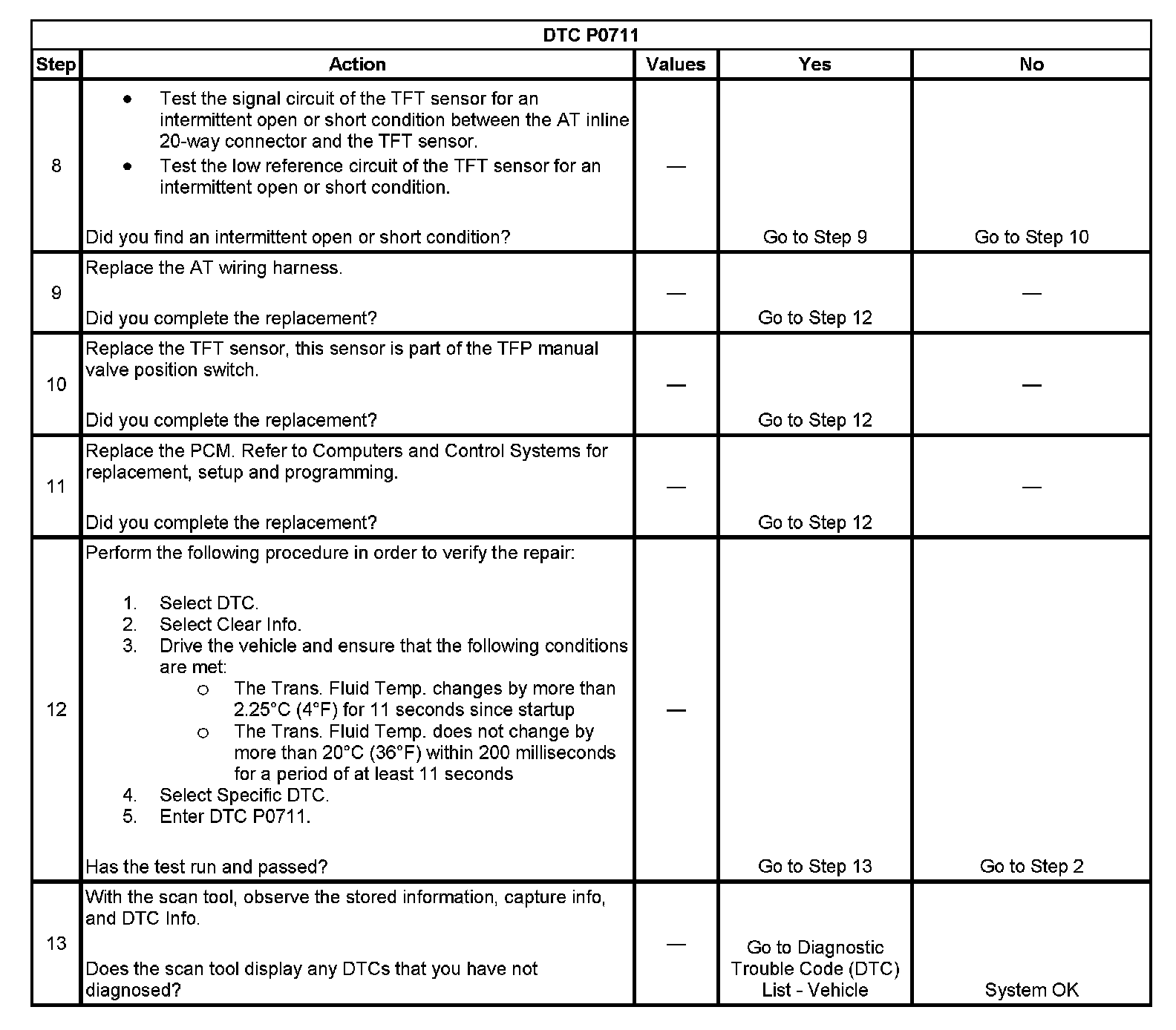 ^ The PCM stores DTC P0711 in PCM history.