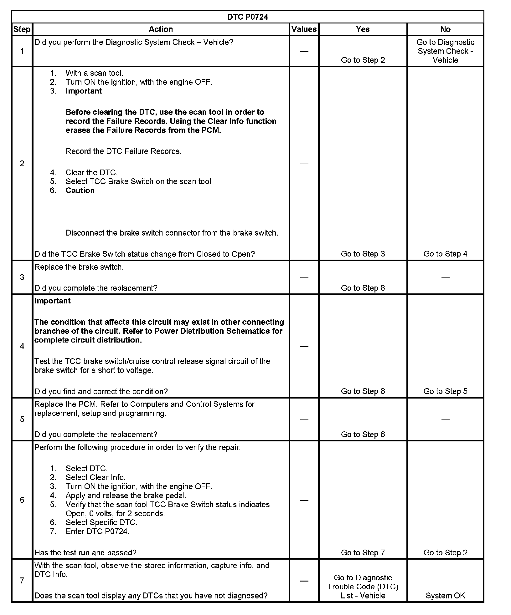 ^ Inspect for Antilock Brake System (ABS) DTC's. A faulty ABS condition may contribute to setting DTC P0724.
