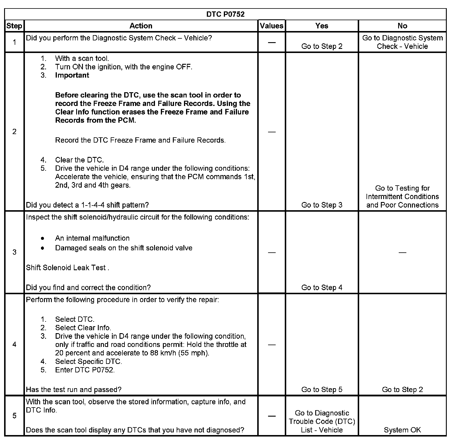 ^ The PCM stores DTC P0752 in PCM history.