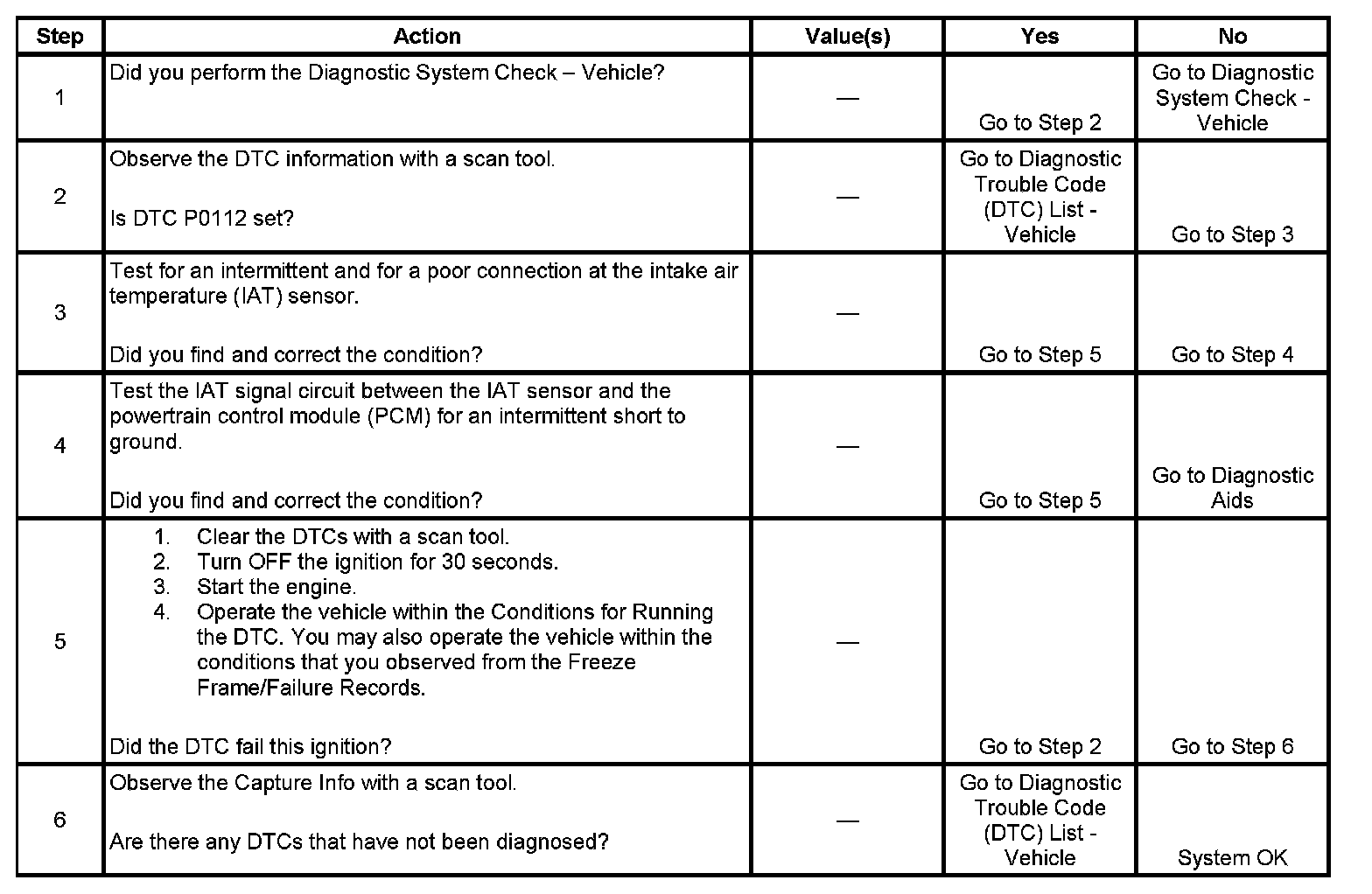 - DTCs P0112 is not set.
