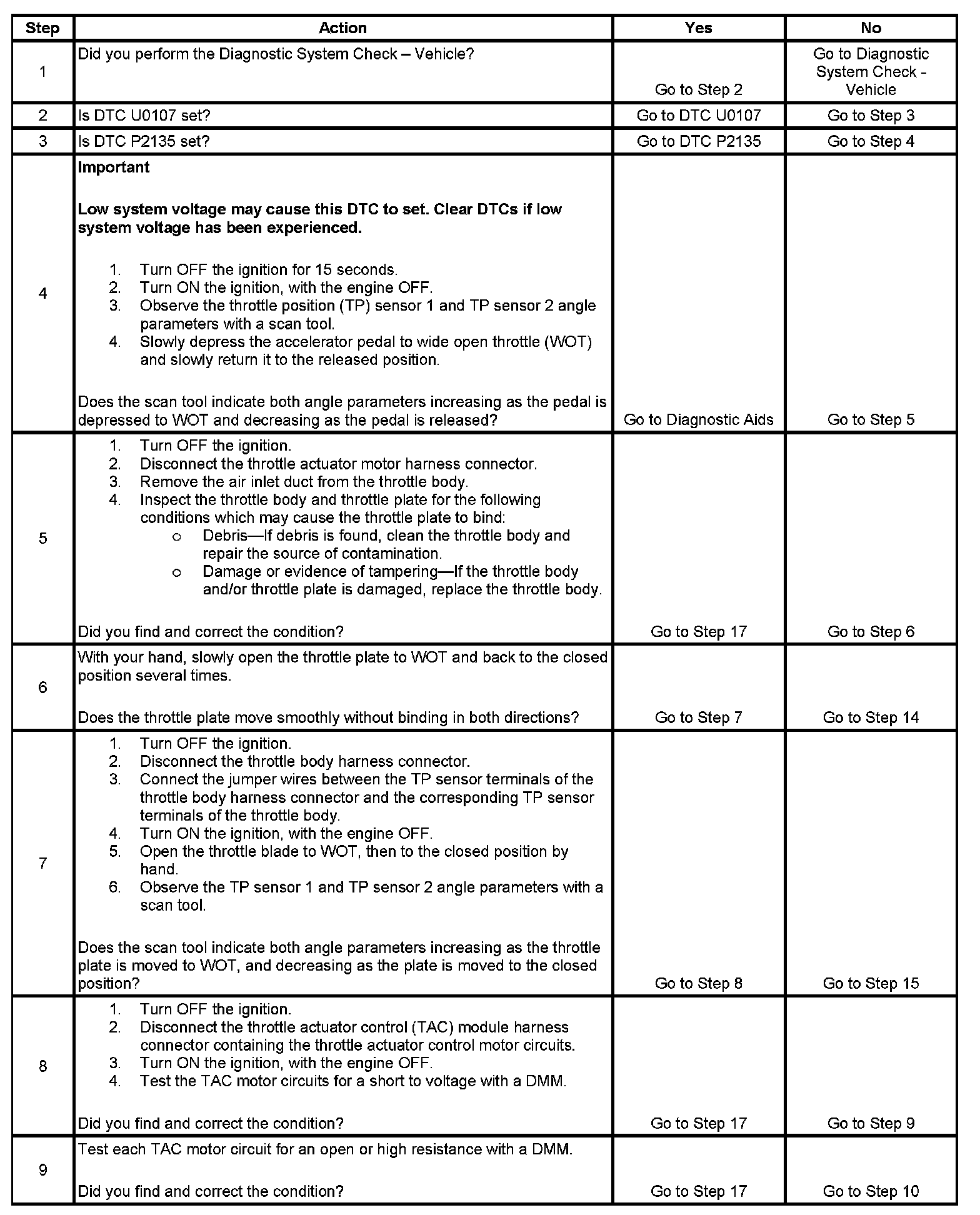 The numbers below refer to the step numbers on the diagnostic table.