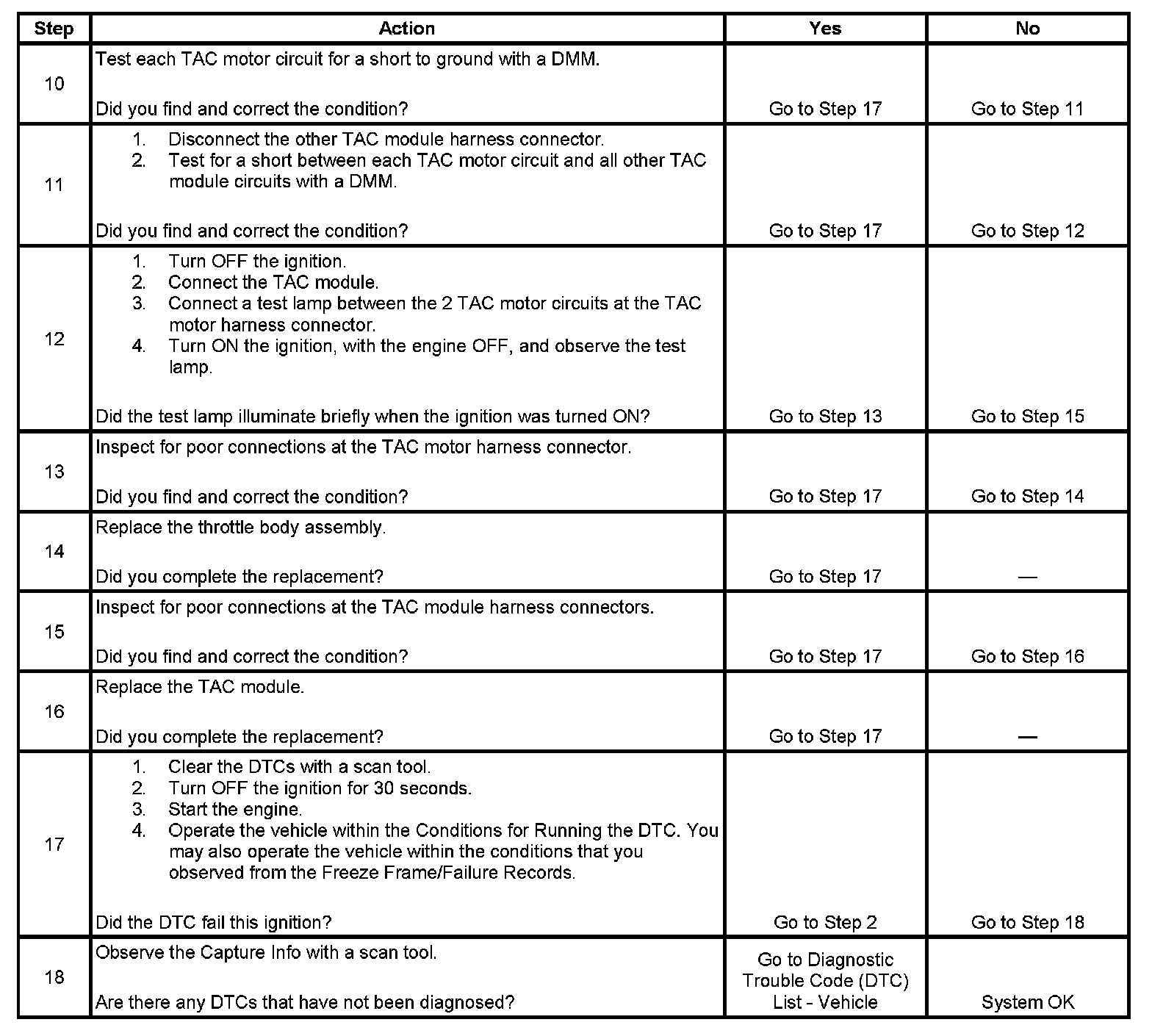 - When the TAC module detects a condition within the TAC system, more than one TAC system related DTC may set. This is due to the many redundant tests run continuously on this system. Locating and repairing an individual condition may correct more than one DTC. Disconnecting components during testing may set additional DTCs. Remember this if you review the stored information in Capture Info.