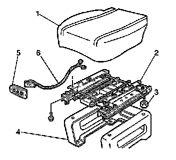 1. Remove the screws that retain the power seat adjuster switch (5) to the seat cushion (1).