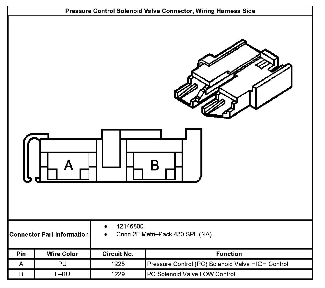 Pressure Control Solenoid Valve Connector, Wiring Harness Side: