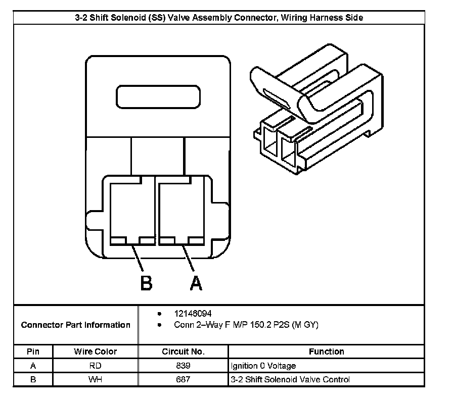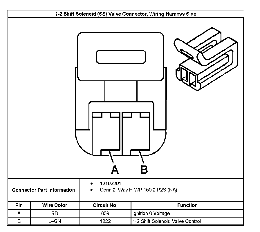 1-2 Shift Solenoid (SS) Valve Connector, Wiring Harness Side: