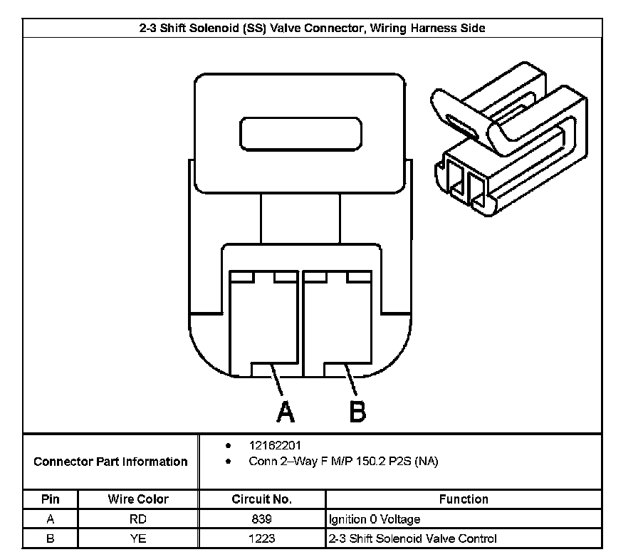 2-3 Shift Solenoid (SS) Valve Connector, Wiring Harness Side: