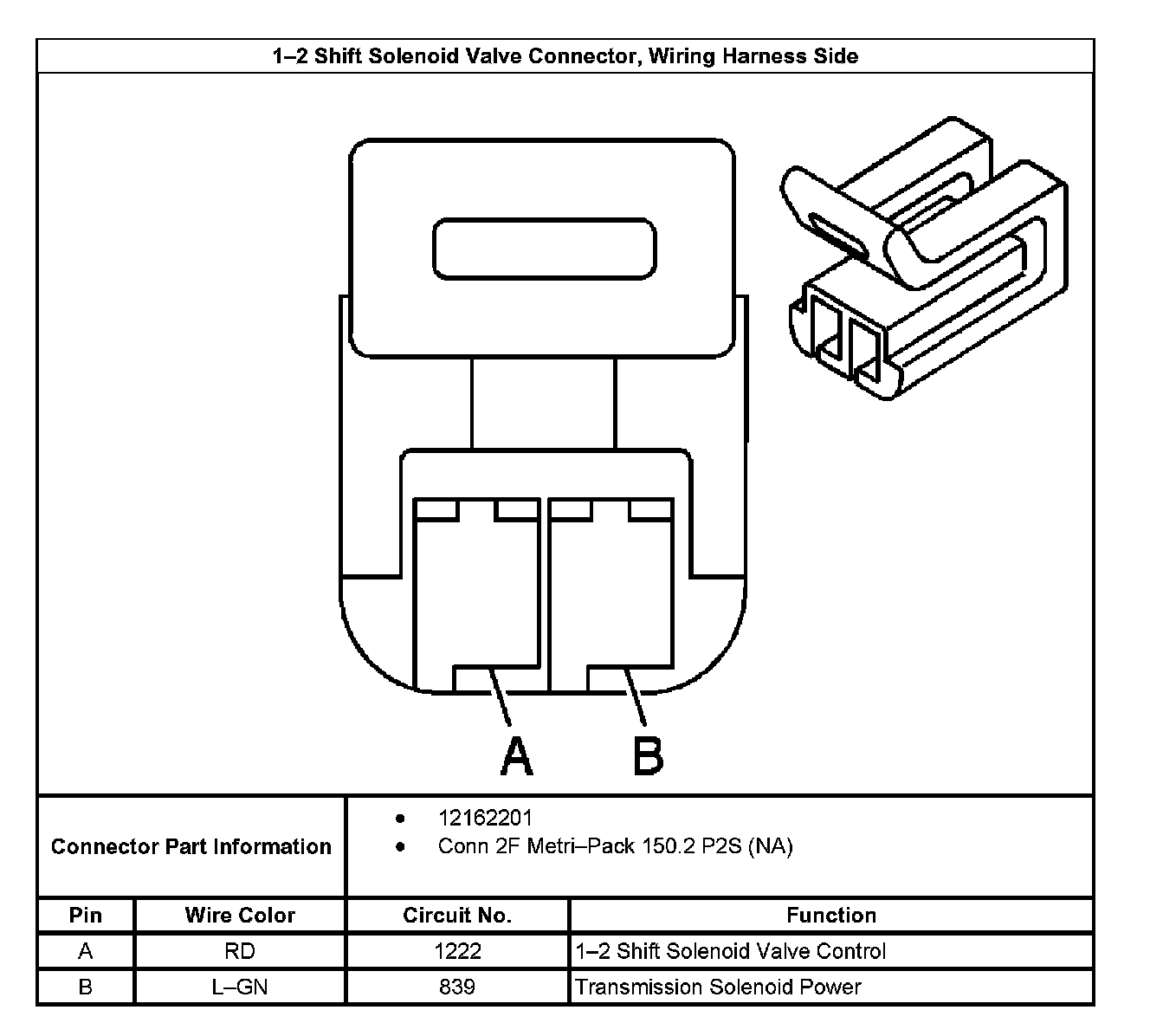 1-2 Shift Solenoid Valve Connector, Wiring Harness Side: