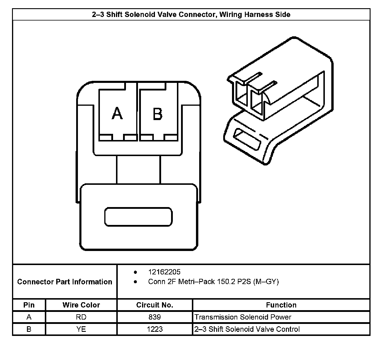 2-3 Shift Solenoid Valve Connector, Wiring Harness Side: