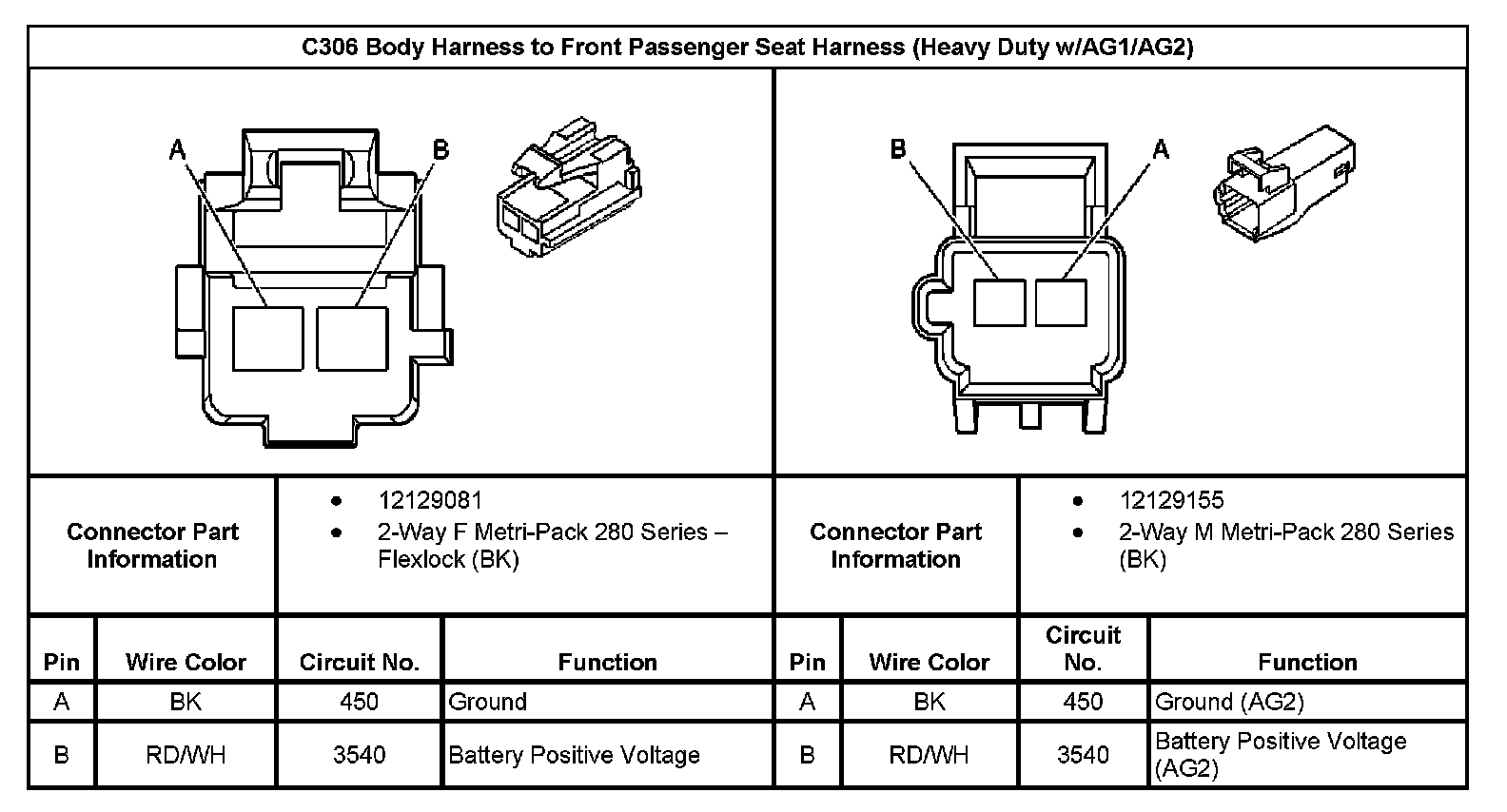 C306 Body Harness To Front Passenger Seat Harness (Heavy Duty With RPO Code AG1/AG2):