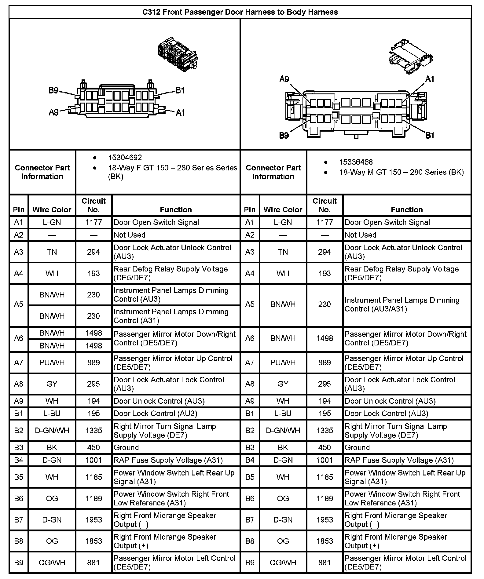C312 Front Passenger Door Harness To Body Harness: