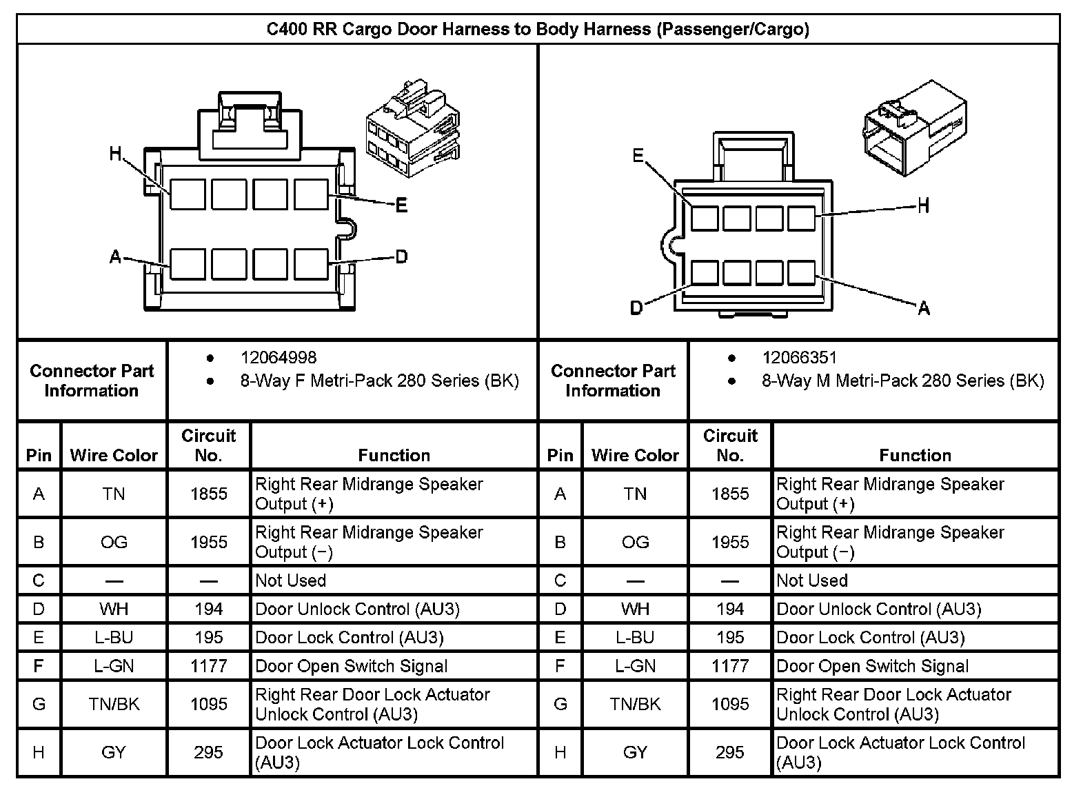 C400 RR Cargo Door Harness To Body Harness (Passenger/Cargo):