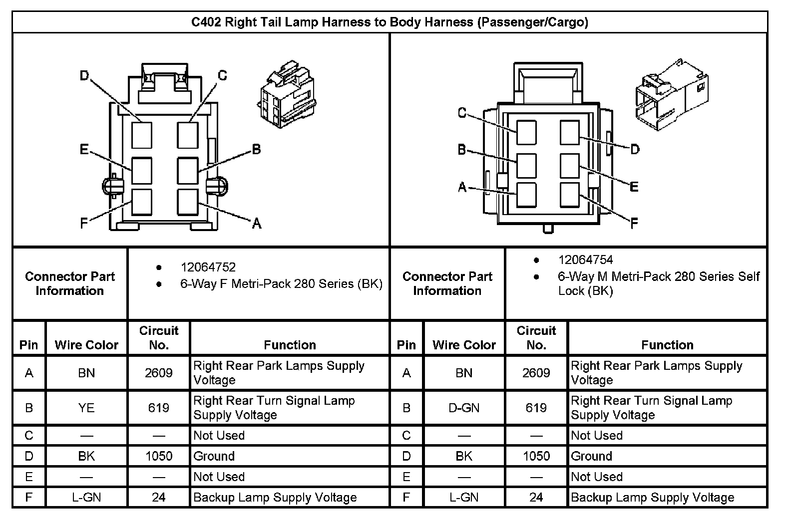 C402 Right Tail Lamp Harness To Body Harness (Passenger/Cargo):