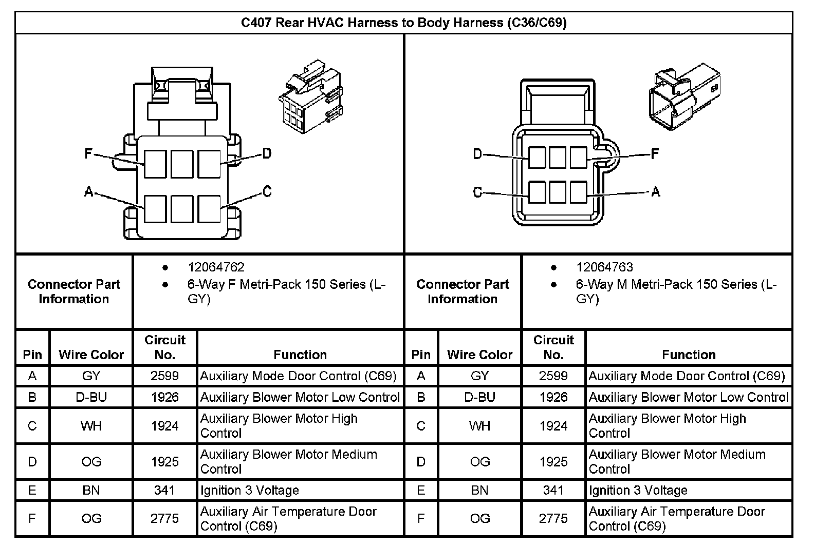 C407 Rear HVAC Harness To Body Harness (With RPO Code C36/C69):