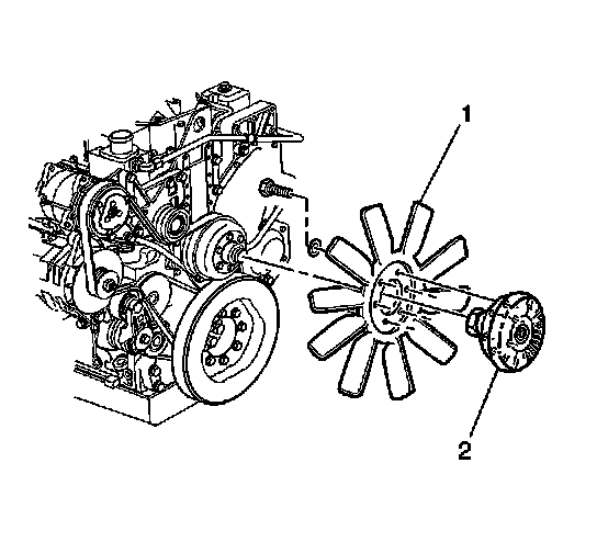 1. Notice: If a fan blade is bent or damaged, do not repair and use the damaged part. Replace a bent or damaged fan assembly with a new fan assembly. Using a fan with a different diameter, pitch, number of blades, or type of blade material may effect the cooling efficiency, performance and engine noise level.