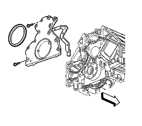^ The crankshaft rear oil seal will be installed after the rear cover has been installed and aligned. Install the rear cover without the crankshaft oil seal.