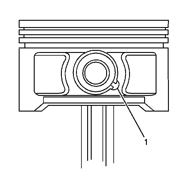 3. Rotate the piston pin retainer until the ring end gap is positioned in the cutout area (1) of the pin bore.