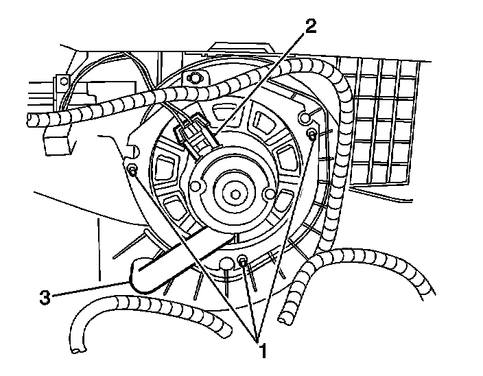 4. Remove the blower motor retaining screws (1).