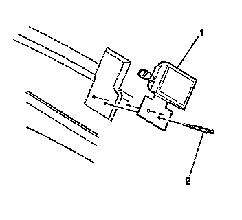 2. Drill out the rivets (2) that retain the underhood lamp (1) to the hood.