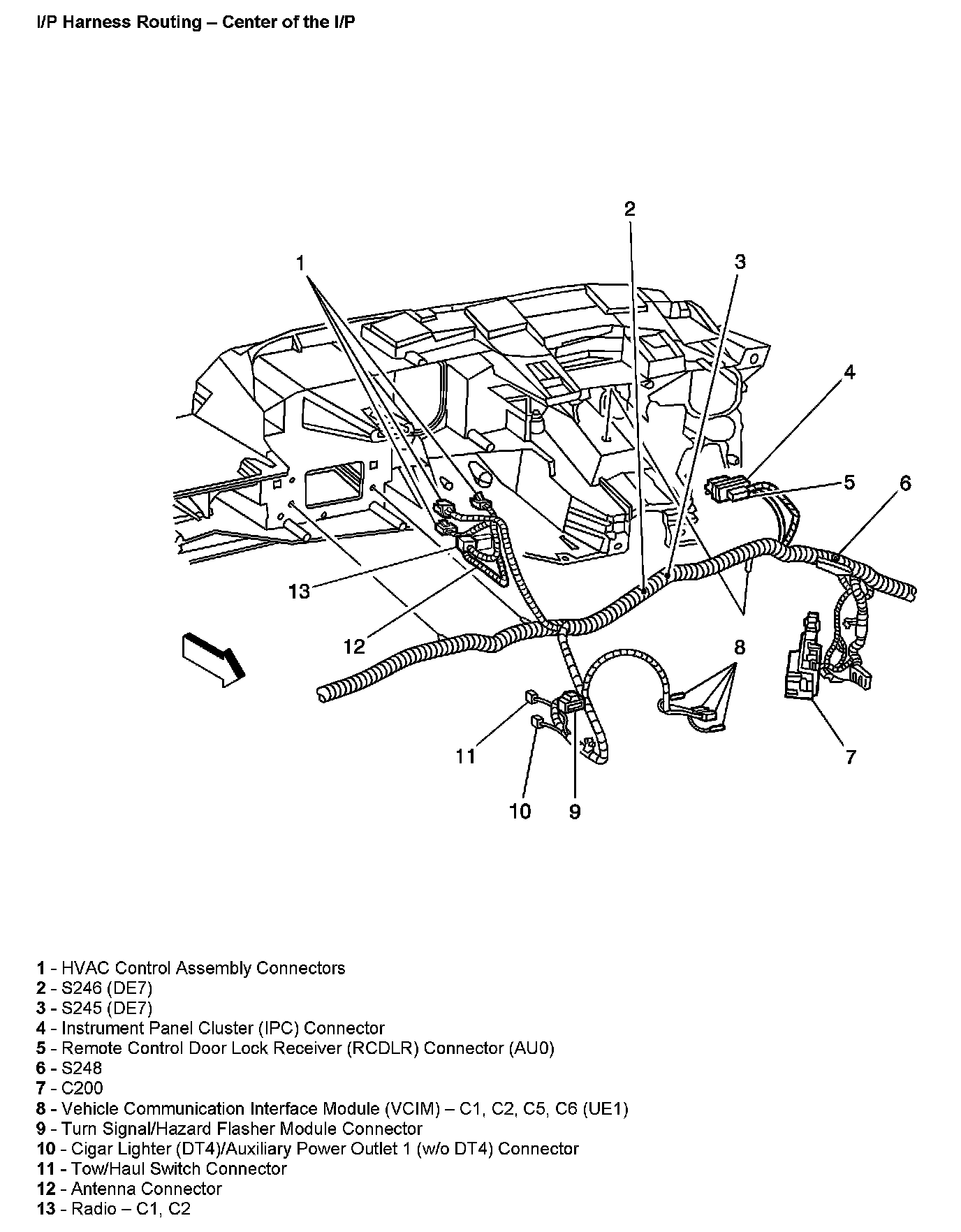 I/P Harness Routing - Center Of The I/P: