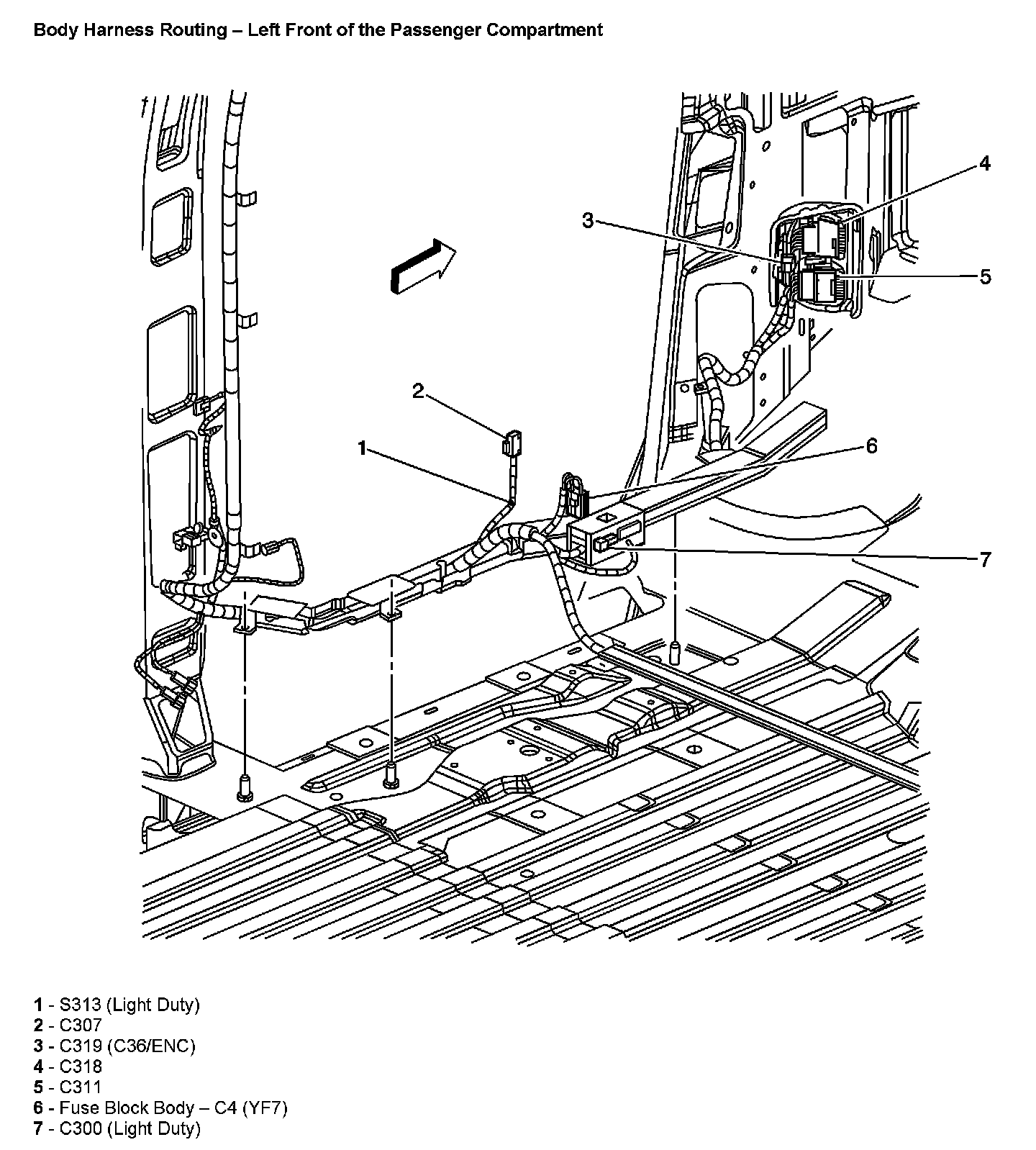 Body Harness Routing - Left Front Of The Passenger Compartment: