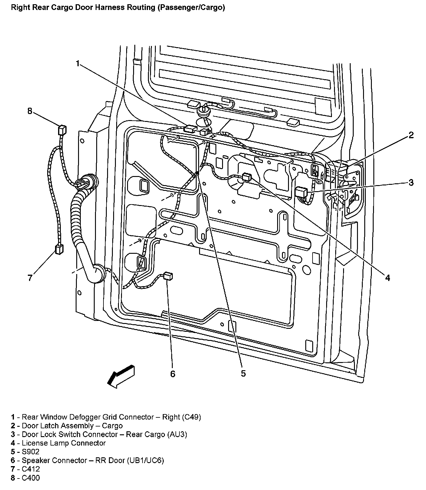Right Rear Cargo Door Harness Routing (Passenger/Cargo):