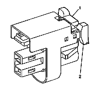 14. While pushing the tab (1) on the injector connector in, release the CPA (2).