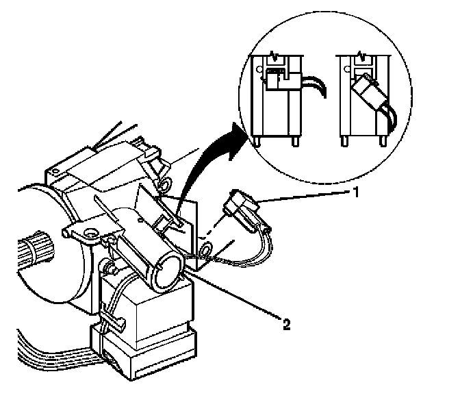 5. Gently pull the key alarm connector (1) out of the ignition lock cylinder case assembly (2).