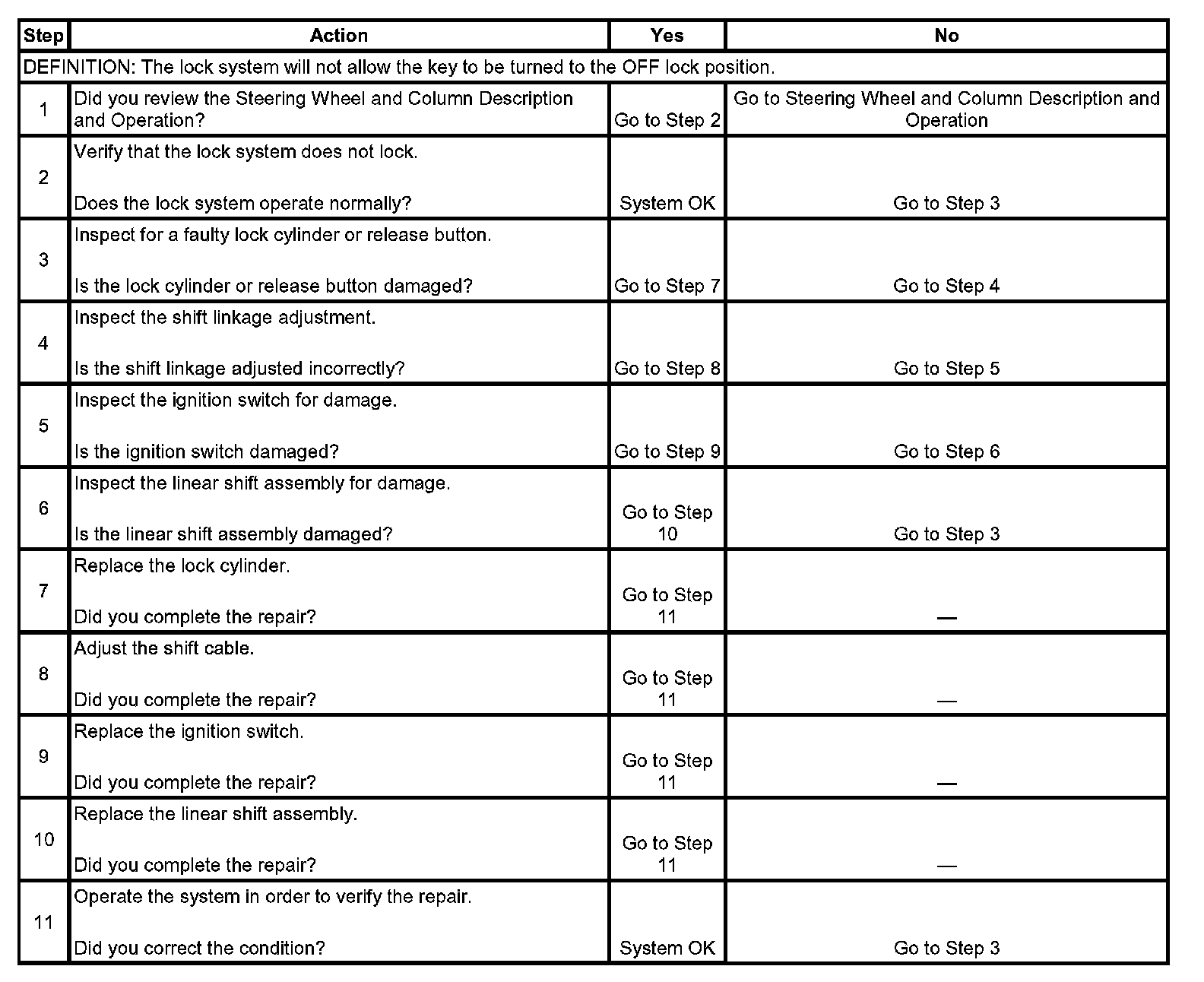 A/T Shift Lock, Lock System Does Not Lock